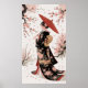 Cette superbe affiche murale présente un délicat tableau numérique d'une femme gracieuse dans un kimono noir, en se promenant dans un jardin serein et fleuri. Elle possède un beau parasol en papier rouge, qui ajoute une éclatante couleur aux tons doux et muets de l'arrière - plan. Le kimono noir est le point central, orné de motifs floraux complexes, roses et dorés qui créent une sensation d'harmonie élégante. Ses cheveux sont stylisés dans un élégant updo avec des fleurs, et toute la scène est encadrée par des pétales de fleurs de cerisiers en chute et des branches en fleurs, donnant à la pièce une qualité éthérée et tranquille. Le style artistique mêle une esthétique numérique moderne et des motifs japonais traditionnels, ce qui en fait une pièce parfaite pour tous ceux qui cherchent à ajouter une touche de tranquillité, de beauté et de sophistication à leur décor maison.
