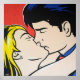 Impression d'une peinture pop art originale par www.jamieleeart.com. Un beau jeune couple enfermé dans un baiser aimant.