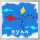 Kite Yellow Red Sky Cloud Drawing Kid`s Name Throw Poster. Cute drawing with two kites - red and yellow. They fly in the blue sky between the clouds. Personalize the poster with your name. Sweet kid`s or baby`s room decor.