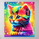 Une illustration captivante d'un chaton joueur baigné dans une palette vibrante de couleurs de l'arc-en-ciel, sur un fond étoilé. Cette œuvre fantaisiste est parfaite pour ajouter une touche de magie à tout style (Cette conception est réalisée avec AI). Commandez dès aujourd'hui et profitez de la joie de faire du shopping !