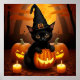 Affiche Kitten noir en Casquette sorcier au milieu des Cit