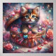 Affiche Kitty Adorable Dans Boîte De Coeur Avec Fleurs