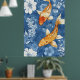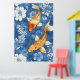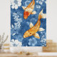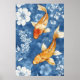 That is a beautiful watercolor illustration. The contrast between the warm, golden-orange of the koi fish and the deep indigo blue of the floral background is striking. The delicate linework on the scales and the soft, washed-out effect of the flowers give it a very serene, artistic feel.