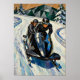 Une peinture à l'huile Art Déco qui dépeint deux bobsledders femmes intrépides dans un bobsleigh noir brillant, leurs formes géométriques stylisées définies par un éclairage spectaculaire de chiaroscuro tandis qu'ils descendent sur une glace stylisée.