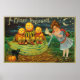 The Witch's Brew - Dans un petit village pittoresque, niché au milieu de collines ondoyantes et de champs verdoyants, vivait une jeune fille nommée Anya. Anya était un enfant curieux, avec un penchant pour l'insolite et un amour pour le macabre. Sa période préférée de l'année était Halloween, quand le voile entre les mondes s'est aminci, et les esprits de la nuit se sont libérés. - Une Halloween, Anya tomba sur une carte vintage particulière dans le grenier de sa grand-mère. La carte dépeignait une scène de beauté étrange, avec un ciel étoilé, une lune de croissant et une jeune fille aux allures de sorcière. La jeune fille était entourée de trois créatures grotesques, sculptées de citrouilles et de melons, leurs visages contorsionnés en expressions d'un autre plaisir. - Intrigué par l'image, Anya a commencé à rechercher le symbolisme de la carte. Elle découvrit que les créatures étaient censées être les gardiens du monde souterrain, convoquées par des sorcières pour protéger leurs sombres rituels. La fille sur la photo, avec ses yeux brillants et son sourire sinistre, était considérée comme une sorcière puissante, capable de ramener les morts à la vie. - Inspiré par la légende, Anya a décidé de recréer la scène à partir de la carte. Elle a rassemblé des citrouilles et des melons de différentes formes et tailles, et avec une main ferme et un couteau tranchant, elle les a sculptés en créatures grotesques et terrifiantes. Puis, sous l'oeil attentif d'une lune en déclin, elle alluma un petit feu et commença à chanter une incantation ancienne. - Alors que le feu s'enflammait et que le vent hurlait, les créatures sur la carte semblaient ressurgir. Leurs yeux brillaient d'une lueur sinistre, et leur bouche bougeait comme s'ils parlaient dans une langue inconnue de l'homme. Anya, remplie d'un sentiment d'émerveillement et de peur, regarda les créatures danser et cavorter autour d'elle, leurs mouvements gracieux et pourtant menaçants. - En fin de compte, l'aventure d'Halloween d'Anya a été un succès. Elle avait non seulement apporté les créatures de la carte à la vie, mais elle avait aussi appris le vrai sens de la magie et le pouvoir de l'imagination. Et alors que les premiers rayons de l'aube touchaient l'horizon, Anya savait qu'elle n'oublierait jamais la nuit où elle convoquait les créatures du monde souterrain. - Cette oeuvre 1900-1916 est du domaine public aux États-Unis parce qu'elle a été publiée (ou enregistrée auprès du Copyright Office des États-Unis) avant le 1er janvier 1927.