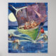 La Chouette et le Chat est une illustration adorable et vintage de livre pour enfants par l'artiste hongrois Willy Pogany vers 1908, pour un poème sur une chouette et un chat qui naviguent dans un bateau vert pois sous la lumière de la lune. Si mignon et un favori !