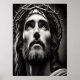 Cette oeuvre détaillée en noir et blanc capture l'essence compatissante de Jésus-Christ, avec son regard orienté vers l'humanité avec amour. La couronne d'épines repose doucement sur sa tête, symbolisant le sacrifice et la rédemption. Des techniques d'ombrage magistrales mettent en évidence les textures complexes de ses cheveux fluides et des caractéristiques solennelles. Le contraste subtil de la lumière et de l'ombre attire l'attention sur les thèmes du pardon et de la grâce divine. Cette représentation évocatrice invitation les spectateurs à réfléchir sur la compassion sans limites du Christ et le salut spirituel qu'Il offre.