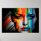 Portrait d'Art numérique peint d'un beau visage de jeune femme en noir et blanc, coloré et stylisé dans des barres de couleurs. Il s'agit d'un autre design 100% original Snuggle Hamster.