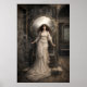 Ceci est une image d'art fantastique originale dérivée d'un dessin à la plume et à l'encre noire et blanche de l'ère victorienne représentant la dame médiévale arthurienne de Shalott.