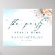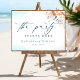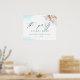 Bienvenue invités à votre mariage de destination de plage avec ce magnifique La fête commence ici Blue Beach Wedding Poster. Conçu dans des tons bleu doux, turquoise, turquoise et pêche aux accents floraux délicats, il saisit l'essence de l'élégance côtière moderne et le charme paisible de l'océan. Parfait pour une fête de plage, ce panneau ajoute une touche sophistiquée et accueillante à votre journée spéciale.
