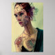 Portrait futuriste et élégant d'un habitant avec des tatouages cyber implantés.