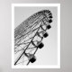 Photographie en noir et blanc des courbes et lignes élégantes d'une grande roue.