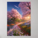 Alors que le soleil commence sa descente, projetant une chaude lueur dorée sur le paysage, un pré s'anime d'une explosion de couleurs et de beauté. Les sakura, leurs fleurs délicates en pleine floraison, ponctuent la scène comme des éclats de nuages roses. Des fleurs vibrantes de différentes teintes tapissent la prairie, créant un patchwork de l'art de la nature. Les collines vertes s'élèvent majestueusement au loin, ajoutant un sentiment de profondeur et de sérénité au panorama.