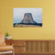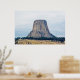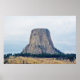 Une photographie d'une butte laccolithique connue sous le nom de Monument National de la Tour des Dévils, qui domine le paysage du Wyoming rural, un jour d'été. Copyright ©2018 Kimberly J Tilley.