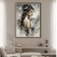 Une fusion hypnotique entre réalisme et art abstrait. Cette œuvre capture la beauté sereine d'une muse enveloppée de traits dynamiques suggérant le mouvement et le vent. Les détails complexes des bijoux et des cheveux contrastent avec le fond esquissé, créant un élément décoratif sophistiqué et émotionnellement profond.