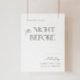 Ce magnifique panneau d'accueil "La nuit avant" donne le ton d'un dîner de répétition inoubliable. Conçu avec une esthétique minimaliste, il présente une calligraphie exquise et une typographie audacieuse qui capture sans effort l'essence de votre moment spécial. Le design simple et frappant est parfait pour les couples qui apprécient la beauté dans la subtilité. L'accueil est sophistiqué et fait allusion au beau voyage qui débute le lendemain. Idéal pour créer une ambiance romantique raffinée, ce panneau n'est pas seulement un morceau de décoration, mais un gardien chéri de l'amour et de la joie partagés à la veille de votre mariage.