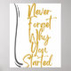 Un design graphique inspirant avec l'expression "N'oubliez jamais pourquoi vous avez commencé" dans une police manuscrite attrayante avec des touches dorées, suggérant l'élégance et la motivation.