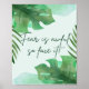 Design graphique épuré avec des feuilles verdoyants et une citation inspirante : "La peur est horrible alors faites-le face !" Le secret pour tuer la peur est de la regarder vers le bas, ne la laissez pas écraser votre style - libérer votre bravoure intérieure.