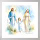 Un portrait délicat de la Sainte Famille, avec saint Marie, l'Enfant Jésus et saint Joseph. Unis par la main, ils marchent ensemble vers nous pour nous prendre par la main et marcher avec eux dans la Paix, l'Espoir et la Foi. Graphique informatique avec peinture, aquarelle effet.
