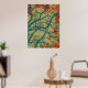 Oeuvre représentant un arbre sur un arrière - plan doré avec tronc vert et feuilles orange rouge. Cette oeuvre symbolise la valeur inestimable des arbres pour la vie sur terre.
