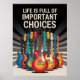 La vie est pleine de choix importants Poster de l'humour Guitar Lover