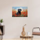 Récupérateur du Labrador noir dans un champ de pavots rouges