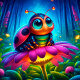 Une jolie coccinelle mignonne est assise sur une grande fleur dans une forêt nocturne magique, des couleurs très vives, des tons néons et une atmosphère magique.(S'IL VOUS PLAÎT! - Voir aussi d'autres nouvelles collections pour plus de choix)
