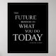 L'avenir dépend de ce que vous faites aujourd'hui - affiche de motivation inspirante, dans un design typographique élégant de couleurs noir et blanc cassé, parfait pour votre bureau, votre salle de sport ou votre maison. Notez que vous pouvez changer la taille de l'affiche en plus petite si vous préférez une affiche plus petite - il vous suffit de la garder dans la même proportion à 16x20 pouces, par exemple, 8x10 pouces s'adaptera parfaitement dans un cadre photo standard. Cette citation inspirante est du Mahatma Gandhi. Pour obtenir des posters de citations plus inspirants, des affiches de typographie cool et des cadeaux de style intéressants, visitez : http://www.zazzle.com/bangingifts