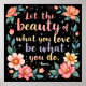 Citation Rumi Inspirationnelle "Laissez la beauté de ce que vous aimez être ce que vous faites" encadrée par de beaux éléments floraux colorés, des étoiles et des éclats de lumière.