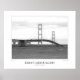 Black and white photograph of the Mackinaw Bridge, which connects the Lower and Upper Peninsulas and defines the boundary between Lake Michigan and Lake Huron.