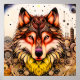 Découvrez une pièce d'art unique qui transcende les frontières entre le monde naturel et l'univers abstrait. Ce design met en scène un loup majestueux, dont le visage est une explosion de motifs tribaux complexes et de couleurs chaudes, allant du jaune éclatant à l'orange flamboyant et au rouge profond. Chaque ligne et chaque courbe sont méticuleusement détaillées, créant une texture visuelle hypnotisante.