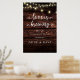 Love is Brewing, Modern Rustic, Dîner de répétition Mariage Poster de bienvenue, en arrière - plan en bois marron, lampes à cordes de cottage thème.