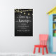 Love is Brewing, Modern Rustic, Diner de répétition Mariage Poster de bienvenue, en arrière - plan de tableau noir rustique, lampes à cordes de chalet thème.