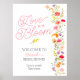 L'amour est en fleur fleur sauvage signe d'accueil de la douche nuptiale fleurie avec jolie main peinte à l'orange vif et brillant, couleur rose et jaune illustration avec une police de script élégante moderne disant L'amour est en fleur, avec feuillage bohème verdoyant. Parfait pour le printemps, l'été en plein air jardin nuptiale ou mariage.