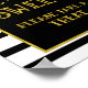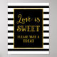 L'amour est doux bar à sucré ou affiche de table de dessert pour mariage en or, rayures noir et blanc motif et écriture manuscrite lettrage vintage.