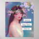 Affiche artistique inspirante. Fairytale Imaginaire Art. Belle fée comme une femme angélique avec des fleurs dans une robe de soie blanche. Joli arrière - plan fleuri violet. L'art féminin.