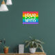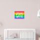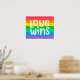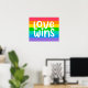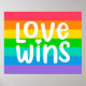 Cette oeuvre présente un arc-en-ciel coloré avec les mots Love Wins.