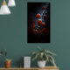Lanterns in the Gloom: A mesmerizing, high-contrast digital illustration focusing on the unique structure of Chinese Lantern plants (Physalis). Against a deep, shadowy, monochromatic background, the paper-thin husks of the lanterns are lit from within, radiating an intense, fiery orange and deep crimson glow. The surrounding leaves and foliage are rendered in dark, painterly tones, creating a dramatic sense of depth and mystery. This piece masterfully uses light and shadow to transform simple flora into an ethereal, glowing focal point, perfect for adding a touch of dark elegance to any room.