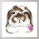 Affiche Lapin américain adorable Fuzzy Lop avec tulipe ros
