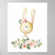 Affiche Lapin bébé, Animaux de la forêt, Bohème, Fleurs ro