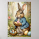Apportez le charme du livre d'histoires à votre décoration de Pâques avec cette délicieuse affiche représentant un lapin en manteau bleu tenant des œufs colorés dans un cadre forestier. Parfait pour la décoration saisonnière, les chambres d'enfants, les nurseries ou les présentoirs de vacances, cette œuvre d'art ajoute de la chaleur et de la gaieté festive.