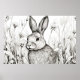 Affiche Lapin Lapin Nature paisible Prairie Sketch Art
