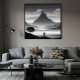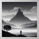 Avant l'immensité, un voyageur contemple la montagne qui monte comme gardien du ciel. Dans les tons noir et blanc, la scène révèle le silence, la force et l'introspection, invitant à la réflexion sur le voyage intérieur et la poursuite de l'inaccessible.
