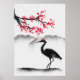 Peinture à la main de l'art mural japonais traditionnel avec sakura et héron