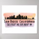 Caractéristiques de l'art San Diego California skyline silhouette avec aquarelle et coordonnées de latitude et longitude