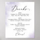 Ce panneau de menu de boissons de mariage violet à lavis aquarelle est parfait pour un mariage moderne. Le design simple et classique présente une touche de couleur lavande pastel avec un style élégant minimaliste.