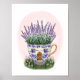 Jolie lavande surgit avec joie du sommet d'une délicieuse tasse bleue, conte de fées, maison. Illustration originale de Noël Snow.