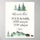 Panneau Momosa Bar avec une illustration d'arbres à feuillage persistant et de montagnes avec une maman et un ours bébé avec les mots Momosa bar dans un script de calligraphie amusant. Correspond à notre collection Adventure Begins trouvée dans la boutique Adore Paper Co. Zazzle.