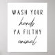 Affiche Lavez-Vous Les Mains Ya Filthy Animal Drôle Salle