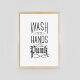 Maintenant, plus que jamais, il est important de se laver les mains. Mais rappelez-le à vos enfants (ou invités ou clients !) d'une manière amusante et sans prédication avec cette impression artistique amusante. Design de lettrage moderne noir sur arrière - plan blanc.